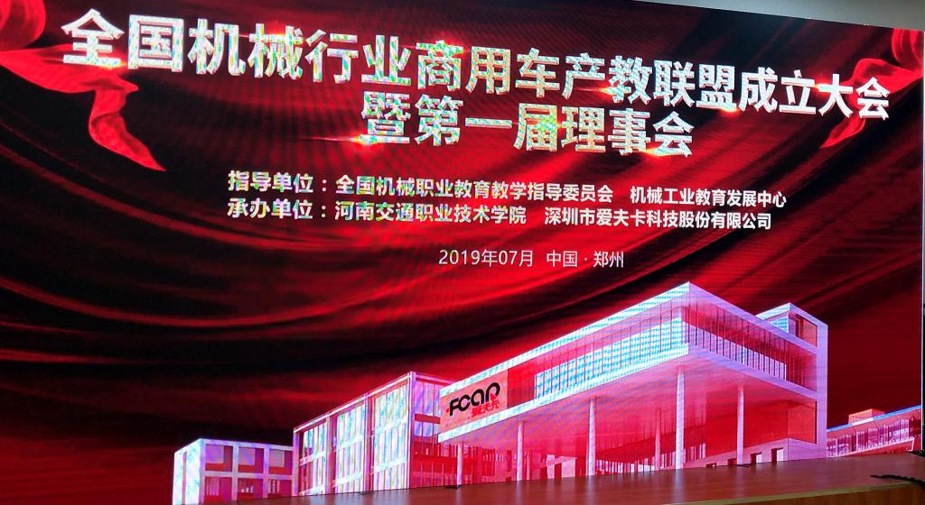 7月18日上午,全国机械行业商用车产教联盟成立大会暨第一届理事会在河南交通职业技术学航海路校区隆重召开。经全国机械职业教育教学指导委员会(以下简称“机械行指委”) 、机械工业教育发展中心批准,由河南交通职业技术学院、深圳市爱夫卡科技股份有限公司、东风商用车有限公司、陕西重型汽车有限公司、长春汽车工业高等专科学校等五家单位牵头发起,柳州职业技术学院、武汉交通学校、河南汽车工程学校、上海交通职业技术学院、湖南汽车工程技职业学院、湖北交通职业技术学院等相关职业院校和技工院校共同组建成立了全国机械行业商用车产教联盟。60余家来自全国各地的职业院校和企业代表共计100余人,齐聚我院,参与联盟成立仪式。会议由深圳市爱夫卡科技股份有限公司董事长姚勇主持。