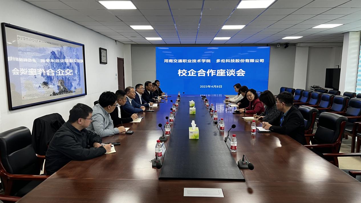 4月8日,多伦科技股份有限公司董事长章安强、副总裁阮蔚一行8人到我校考察交流并召开座谈会。副校长刘芝梅出席并主持座谈会。