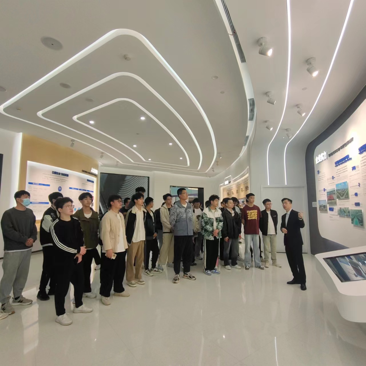 在企业人员的陪同下,同学们依次参观了承装车间、试车道及宇通客车博物馆。在参观中,企业人员从宇通的发展历史、发展理念、发展目标、主营业务范围、相关业务流程等方面为大家展开了详细的介绍。