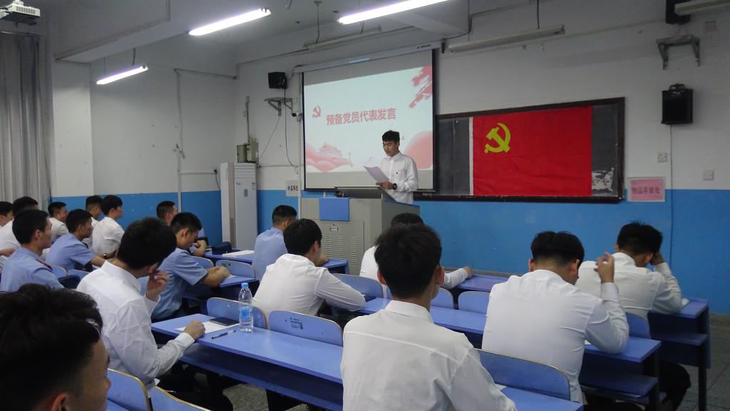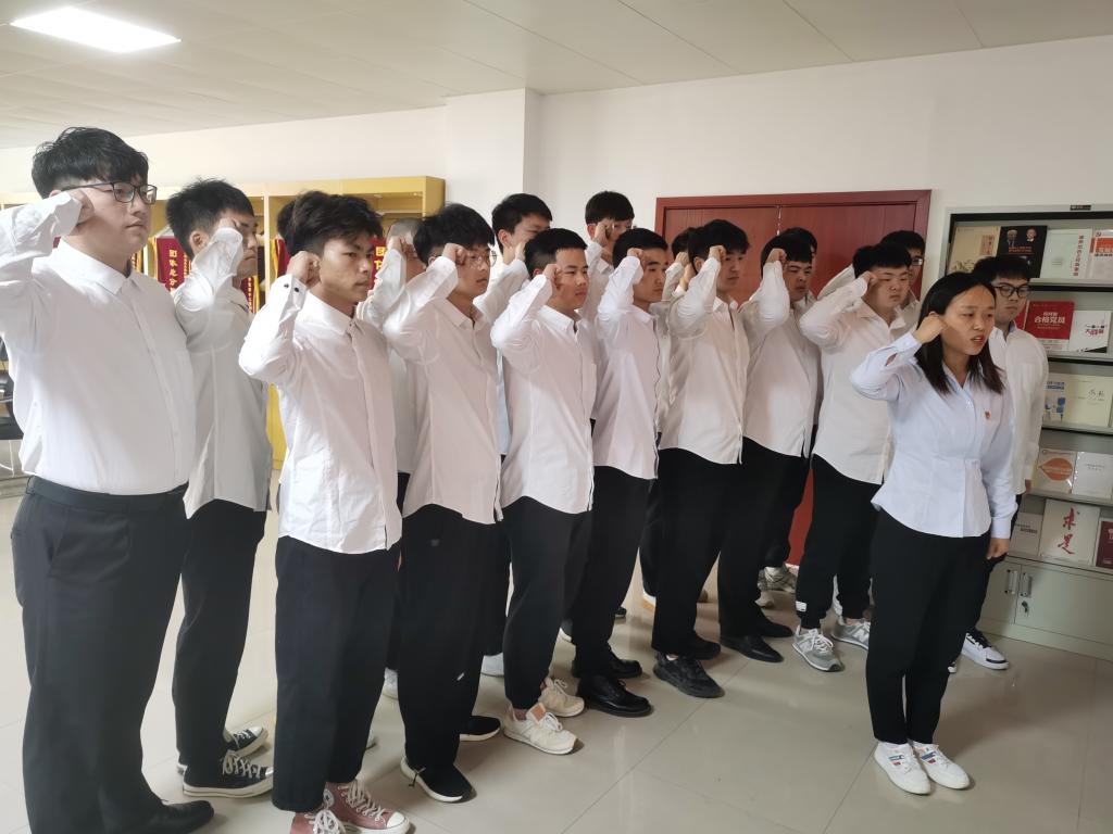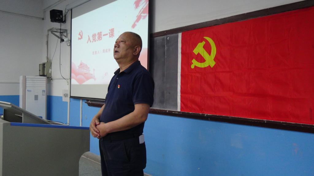 随后,全体党员走进教学楼115教室聆听党旗下讲话,重温光辉党史。新党员代表李长春、郭朝振、王涛分别表态发言,他们表示在今后的学习中,将按照党员的标准严格要求自己,发挥先锋模范作用,本次入党宣誓仪式让他们深刻感受到了作为一名共产党员的责任和使命,又一次经历了思想上的再教育,行动上的再激励,精神上的再振奋。