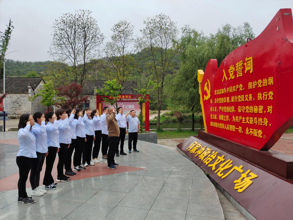 在何家冲政治文化广场,全体党员在汽车学院党总支书记周成林的带领下重温了入党誓词。