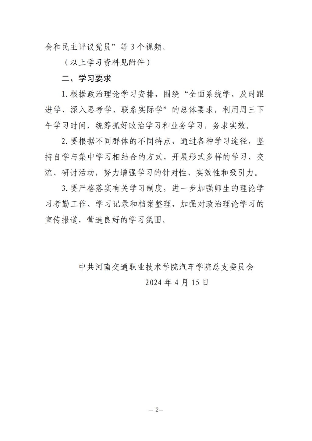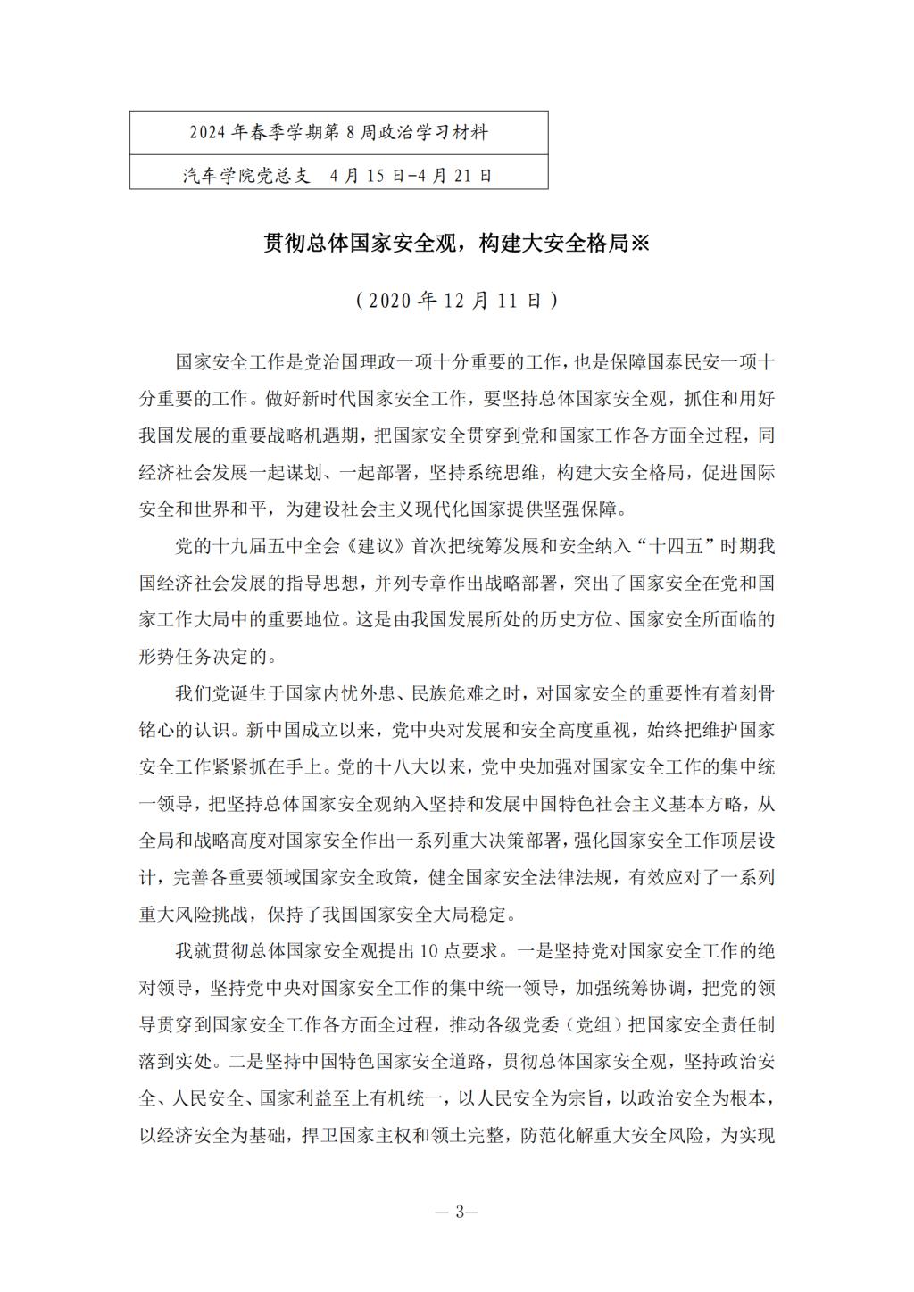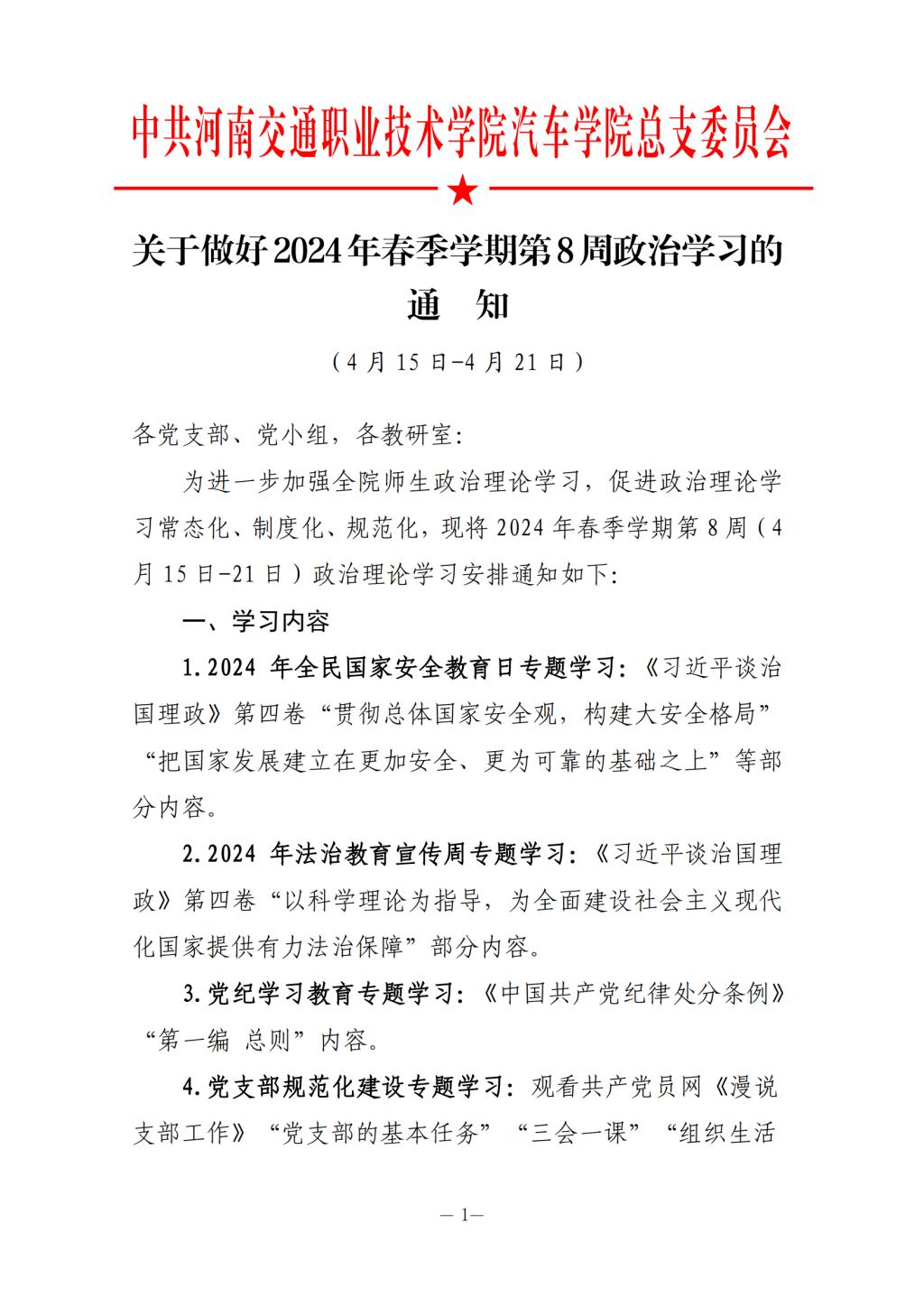 2024年春季学期第8周政治学习安排