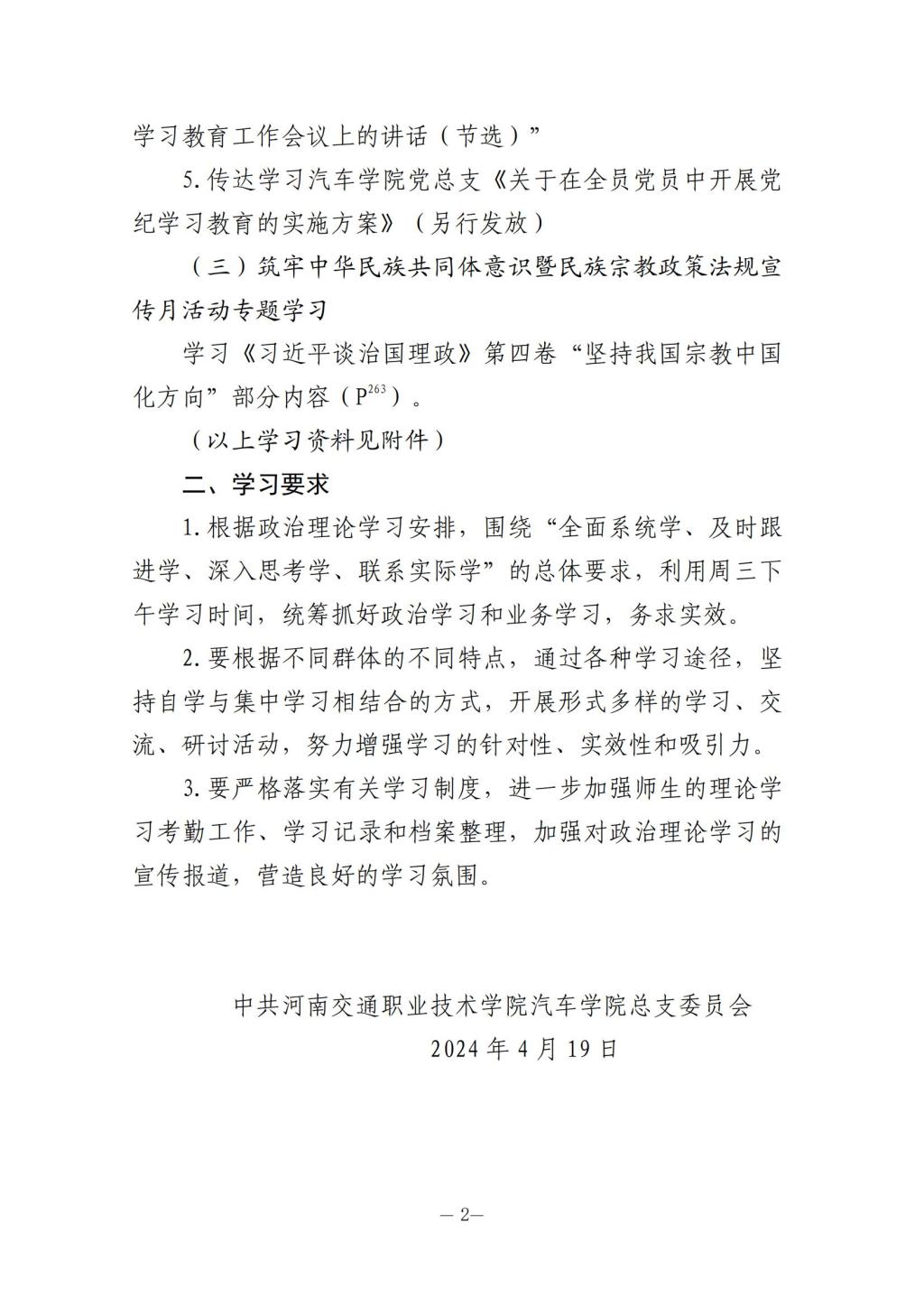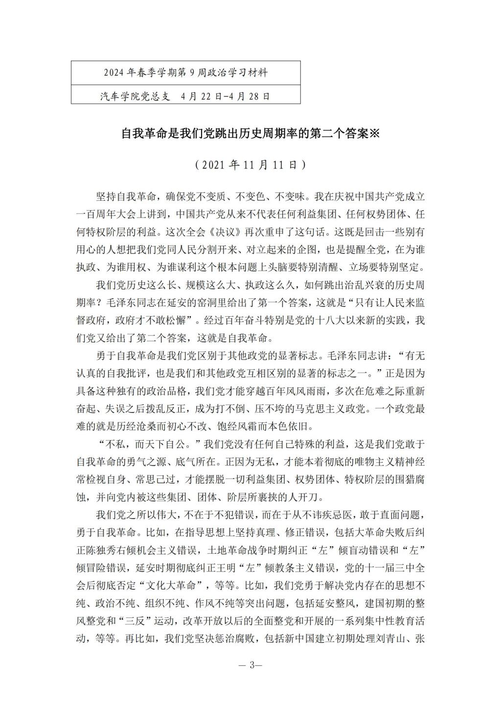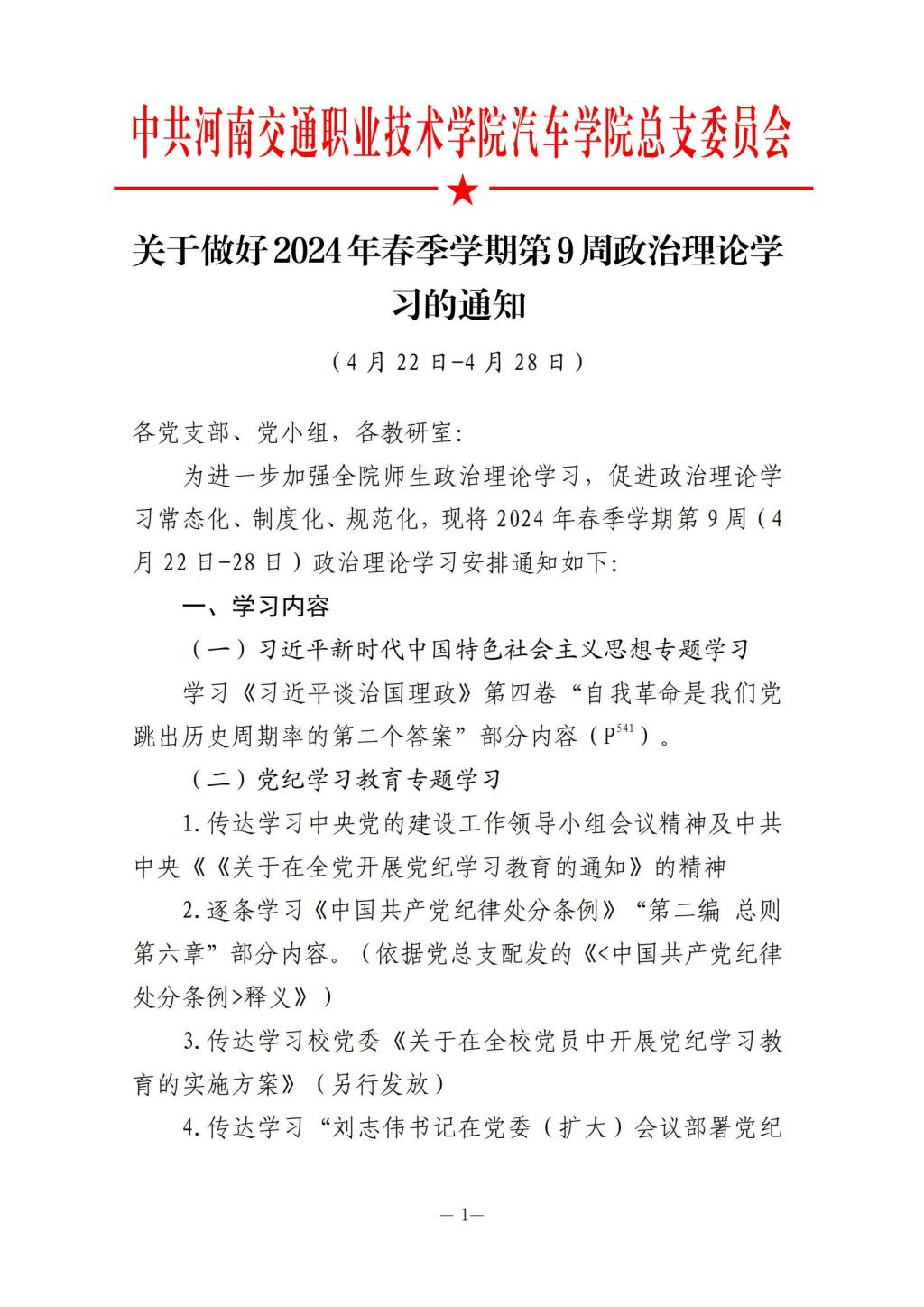 2024年春季学期第9周政治学习安排