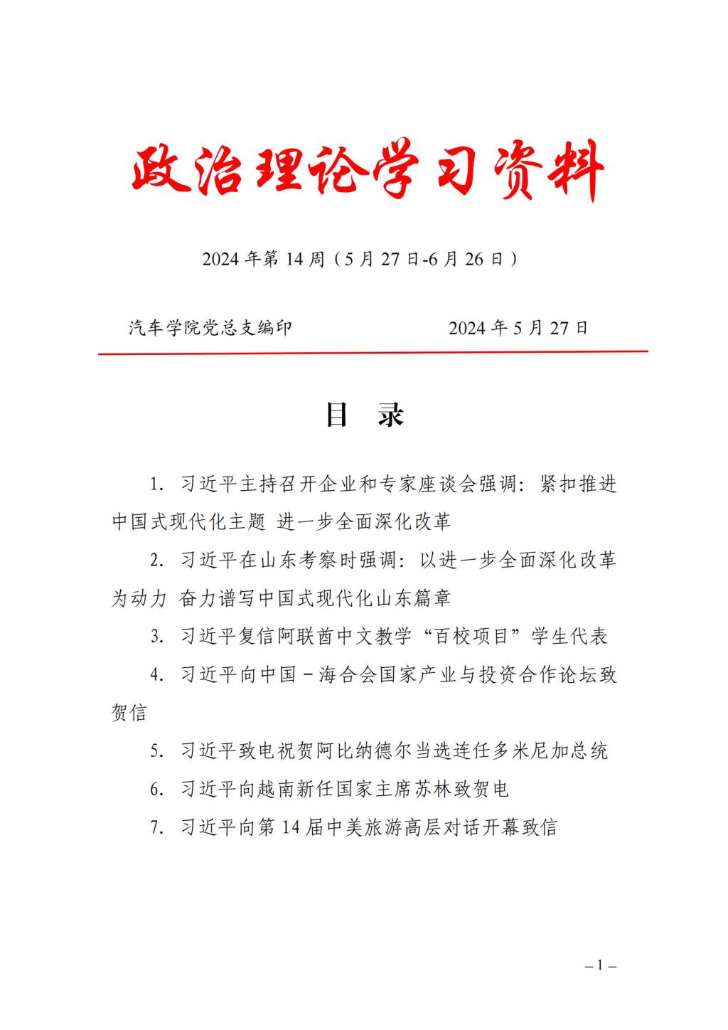 2024年春季学期第14周政治学习安排