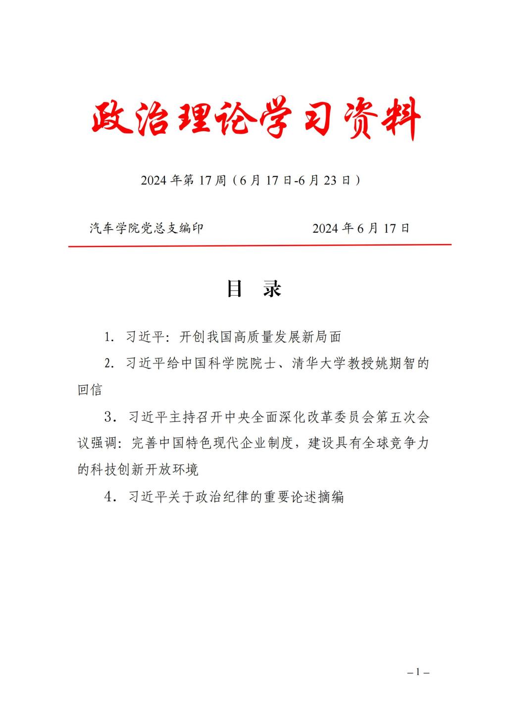 2024年春季学期第17周政治学习安排