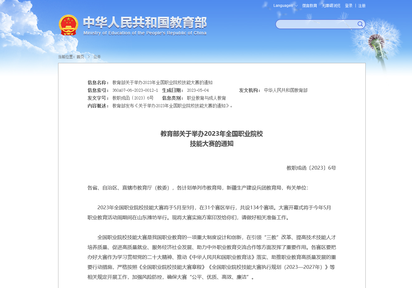 5月4日,教育部发布《关于举办2023年全国职业院校技能大赛的通知》,公布了2023、2024年全国职业院校技能大赛赛项名单、赛区及承办院校,我校获得2023年和2024年汽车营销赛项承办权,这也是学校首次获得全国一类赛事承办资格。