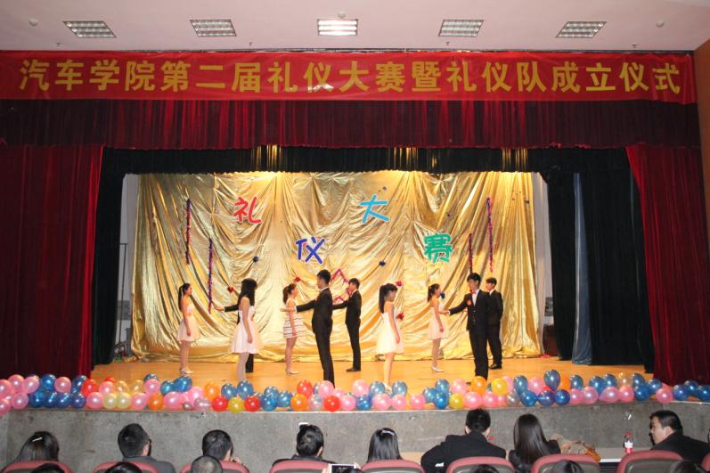 2014年12月1日,汽车学院第二届礼仪大赛暨礼仪队成立仪式在艺术中心如期举行。汽车学院党总支书记宋阳、副院长吴笑伟、校团委副书记刘甲玉及郭天娇老师出席了本次大赛,汽车技术服务与营销教研室和实训中心老师担任大赛评委,另外,郑州大学体育学院国家一级教练员许学同;汽车学院优秀毕业生、首届礼仪队队长李华强做为特邀嘉宾也莅临了大赛现场。