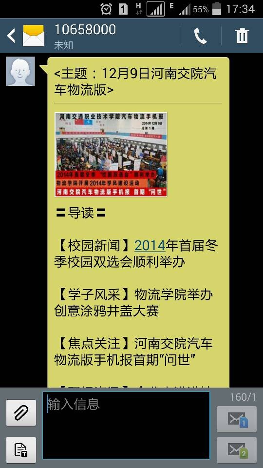 为响应信息化校园建设,探索新的师生沟通方式,航海校区汽车学院与物流学院与《河南手机报》多次协商,经过前期长时间精心准备,12月9日第一期《河南手机报河南交院汽车物流版》成功“问世”,开创了河南高校手机报“先河”。