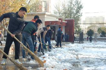 11月24日,郑州迎来了入冬以来的第一场大雪,伴随着凛冽的寒风,厚厚的白雪覆盖了整个校园。校园内道路和天桥积雪结冰,给师生出行带来诸多不便。25日下午,汽车学院党总支组织学生党员义务对航海校区进行扫雪铲冰。