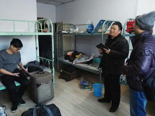 27日学生办理入住与入厂手续。大部分学生初次到东北,长春的天气寒冷,为了了解学生思想动态,刘书记和指导教师仔细检查了每一间学生宿舍,叮嘱学生要注意保暖、不吃剩、冷的食物,并叮嘱指导教师要多了解及时为学生排忧解难,保证学生实习顺利进行。