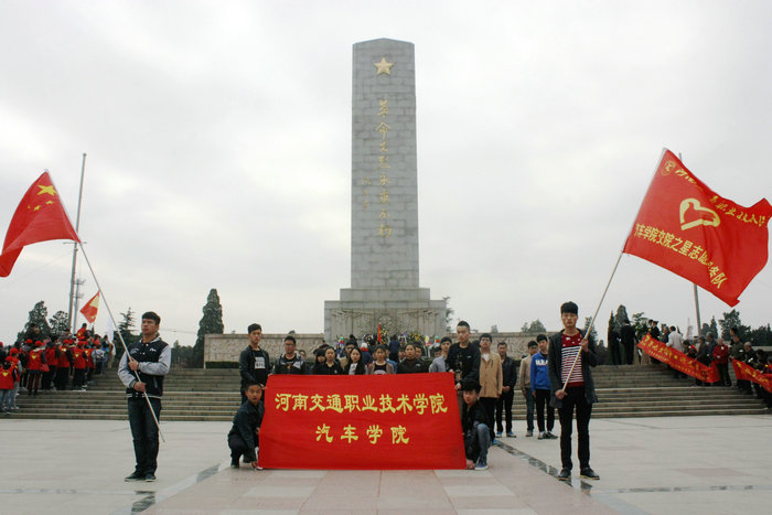又是一年清明时,为纪念中华民族的传统节日,缅怀革命先烈,弘扬爱国主义精神,4月4日清明节,汽车学院组织30余名学生志愿者来到郑州市烈士陵园,举行了主题为“缅怀革命 弘扬民族精神”的清明节扫墓活动。