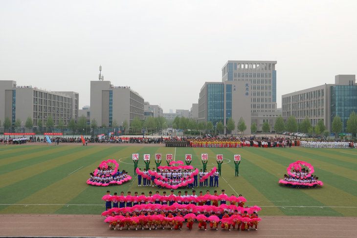 开幕式上,由169名大一新生表演的大型扇子舞《舞动青春 炫动未来 》赢得观众们连连喝彩。由128名学生组成的鲜花方队和彩球方队,昂首阔步走过主席台,用整齐的步伐向所有人宣告我们的斗志和自信。