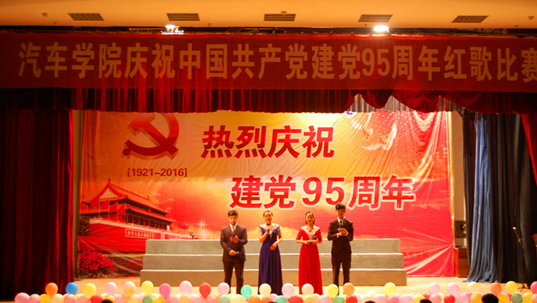 为庆祝中国共产党建党95周年,弘扬爱党爱国精神,汽车学院于6月23日晚在航海校区艺术中心厅举办建党95周年红歌大赛。汽车学院党总支书记刘向杰、团总支书记胡训华、各班辅导员和300余名学生代表出席了本次活动。
