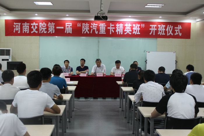 7月5日,学院第一届陕汽重卡精英班开班仪式在航海路校区顺利举行。汽车学院院长朱学军、陕汽集团培训科科长张丽敏和河南省各地经销商代表出席了仪式。