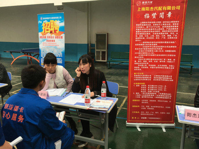 随后全国10个省市的31家经销商代表分别对各自企业的基本情况、招聘职位、员工职业发展方向和薪酬福利待遇进行宣讲。随即在体育馆进行了现场招聘会,有286位学生与企业初步达成就业意向。