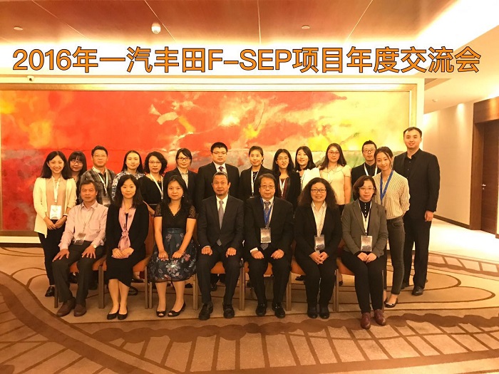 2016年11月17日,一汽丰田销售技能大赛暨金融保险表彰大会,一汽丰田F-SEP项目年度交流会在广州佛山顺利召开。一汽丰田业务部笹谷一郎副部长、培训室冈泽健一主查、培训室钟文室长,全国9所交校F-SEP项目教师以及F-SEP学生优秀毕业生代表出席会议,我校汽车学院F-SEP项目黄樱、张弘韬两位老师参会。