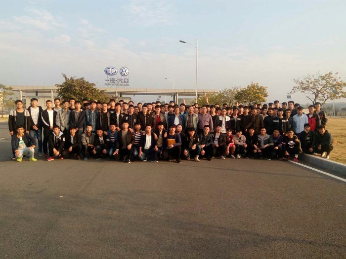12月18日至19日,汽车学院2015级汽车制造与装配技术专业189名学生奔赴一汽-大众汽车有限公司佛山和成都生产性实训基地,开展为期半年的顶岗实习。在汽车学院相关领导的陪同下,顺利到达实训基地。
