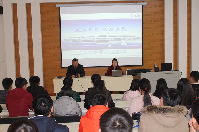 12月28日下午14时,汽车学院在航海路校区艺术中心与阶梯教室举行了两场“现代学徒制”宣讲会。“河南合众汽车集团”人力资源总监许娟亲自到场向在座的16级各专业同学进行了精彩的动员。汽车学院院长朱学军、党总支书记刘向杰出席本次宣讲会。