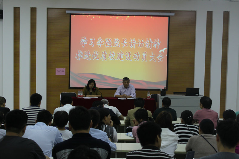 9月27日下午,航海路校区在职业技能鉴定中心三楼举行《学习李强院长讲话 推进优质校建设》动员大会。汽车学院、职业技能鉴定中心、继续教育学院的全体教职工参加会议,汽车学院副院长邰茜主持会议。