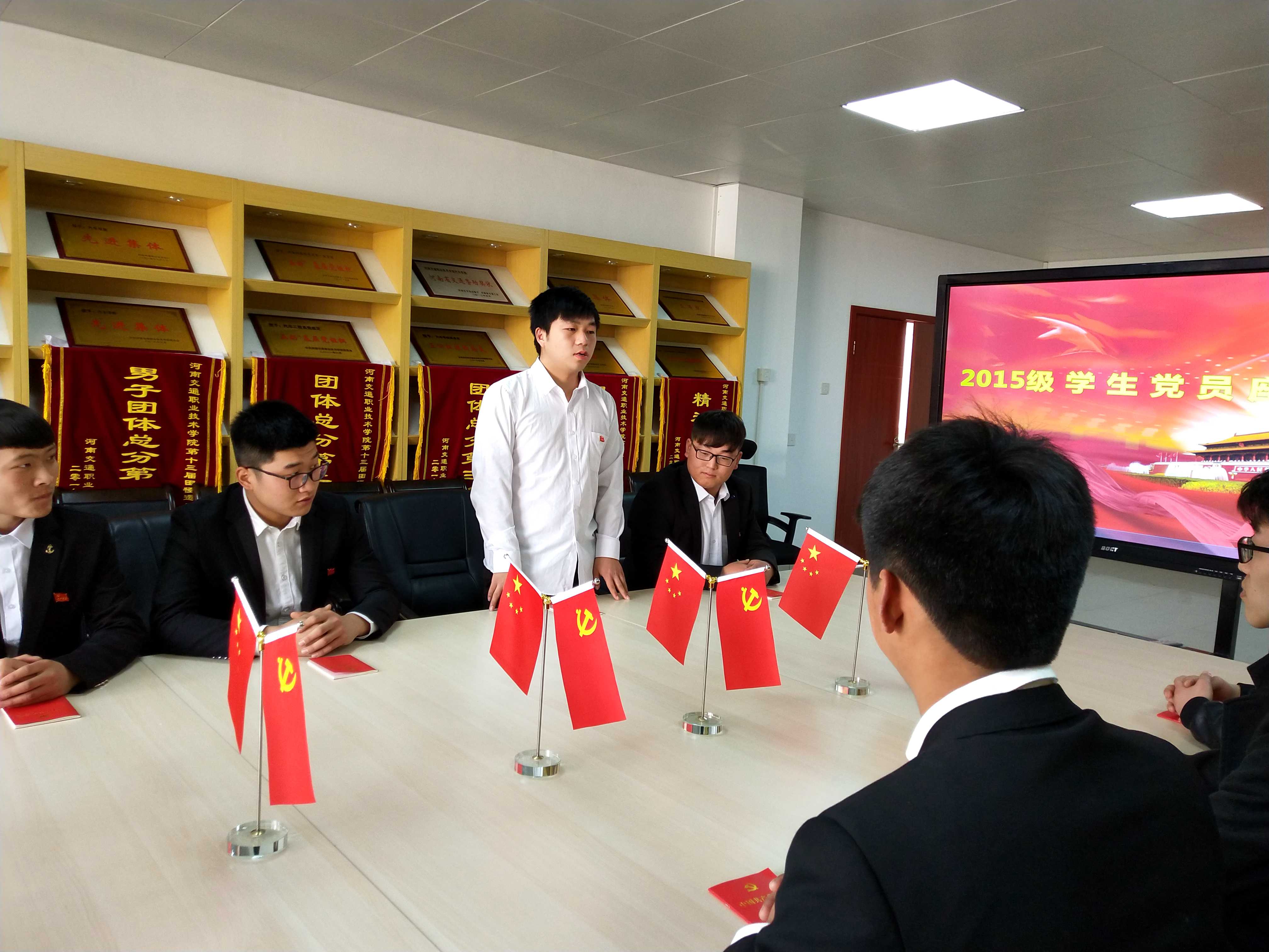 会后,61名党员来到汽车学院党员之家,佩戴党徽亮身份,面向党旗重温入党誓言。学生党支部书记胡训华为他们上了一次党课,并对他们提出了要求:希望转正的同志能够以一名优秀共产党员的标准严格要求自己,要时刻与党中央保持一致,要从思想上、行动上入党,切实发挥党员的先锋模范带头作用。