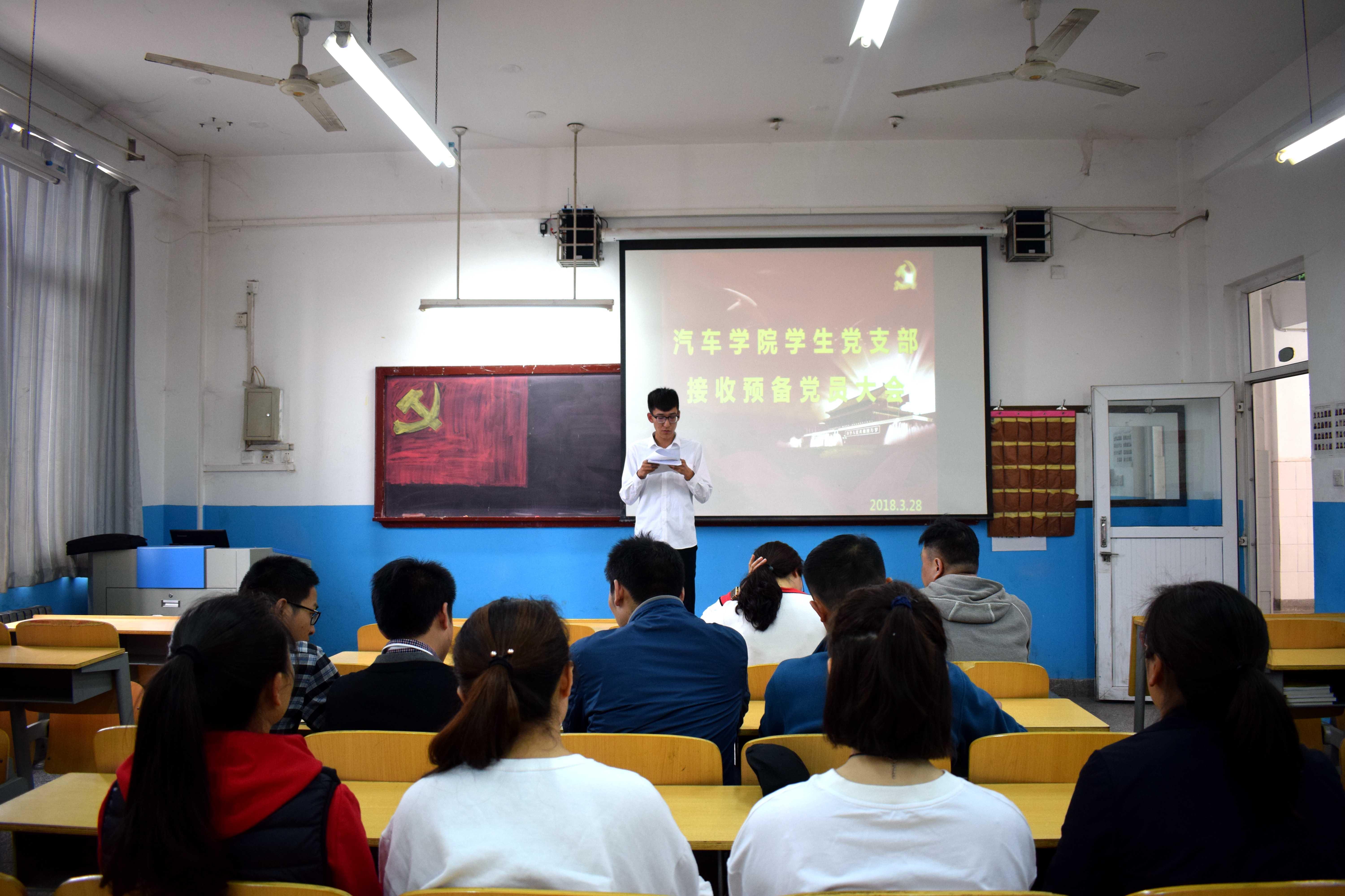 3月28日下午,汽车学院党总支下属四个党支部分别在教学楼104、105、106教室和职业技能鉴定中心举行支部党员大会,讨论审议接收魏家明等73名同志为中共预备党员的事宜。