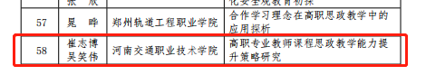 汽车学院教师获河南省第二届高校思想政治理论课建设征文三等奖