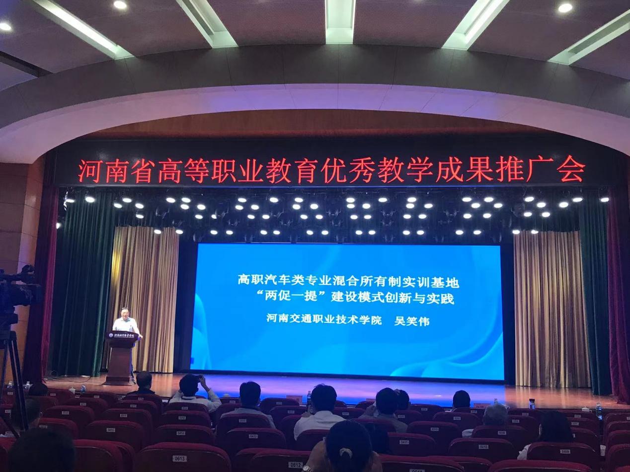 据悉,此次大会全省仅有16所高职院校的21项优秀教学成果受邀进行推广交流。我校作为受邀院校之一,参加推广交流。会上,吴笑伟教授以《高职汽车类专业混合所有制实训基地“两促一提”建设模式创新与实践》为题,从成果的起源、背景、解决的主要问题和解决方案、创新点和应用推广效果五个方面对我校混合所有制实训基地建设成果进行分享交流。成果理念先进、应用效果好,整体达到国内同类研究领先水平,为全省混合所有制实训基地建设提供了“河交”方案,得到大会同仁的一致肯定和广泛好评。
