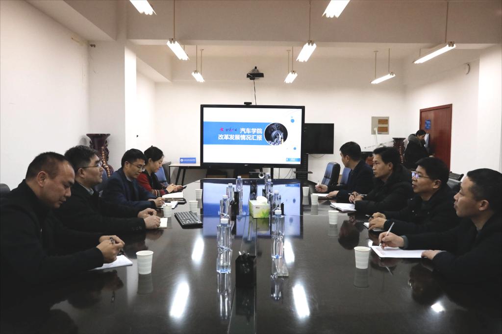 2月24日下午,商丘职业技术学院交通学院院长朱凯、党总支书记刘海洋等一行四人来汽车学院参观交流,汽车学院党总支书记轩照振陪同参观。