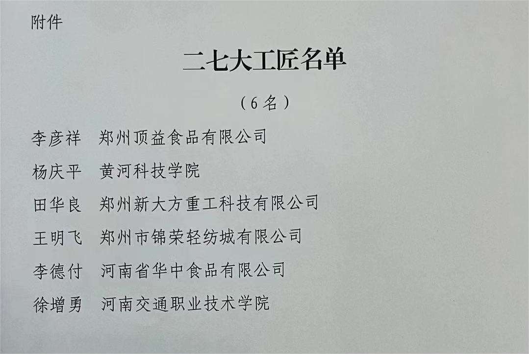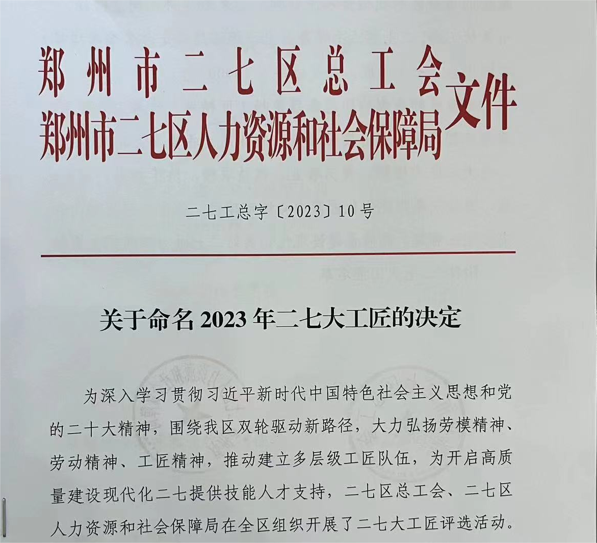 4月26日,郑州市二七区总工会、郑州市二七区人力资源和社会保障局联合发布《关于命名2023年二七大工匠的决定》,我校汽车学院教师徐增勇被授予二七大工匠荣誉称号。
