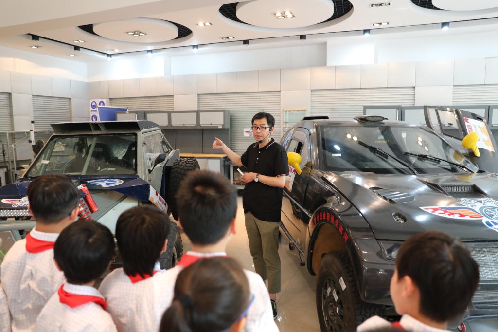 一走进校园,各种汽车标志、雕塑和正在参加军训的大一新生立即吸引了他们的目光。“那是宝马的标志”“那是大众的标志”“那是路虎的标志”……这些小学生们一边手指着汽车标志,一边讨论着。不知不觉间,他们被老师带到了一间现代化的赛车实训室里。看到停放在这里的参加过环塔拉力赛、阿拉善英雄会、敦煌·大海道汽车耐力赛等比赛项目的炫酷赛车,他们发出了一声声惊叹。老师借着他们的这股兴奋劲儿、好奇劲儿,通过互动的方式,生动地为他们展示了汽车越野拉力赛的魅力,并让他们坐进赛车进行了亲身体验。随后,他们还被老师带往操场试乘无人驾驶汽车,试乘过后,他们把老师团团围住,求解无人驾驶汽车的奥秘。