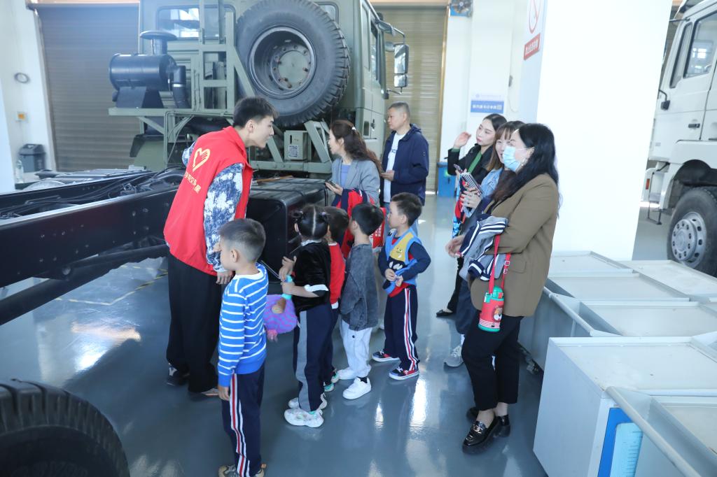 在活动中,孩子们分别参观了越野赛车基地、工程机械大棚基地、商用车基地。孩子们不仅仅看到了功能强大的越野拉力车辆,也近距离观察了挖掘机、推土机等多种工程机械的巨大身躯,并且见识到了多样的军用以及民用卡车,在参观的过程中,小朋友们通过学院老师的讲解收获了更多汽车方面相关的知识。在参观完三个基地后,就来到了小朋友们最期待的环节:体验试乘无人驾驶汽车。他们在专业人员的指导下,体验了未来交通的前沿技术。坐在自动驾驶汽车中,小朋友们亲身感受到了科技的力量,露出了惊喜的表情。