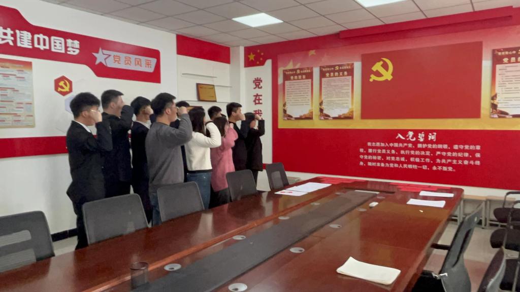 随后,贾颖慧同志带领全体党员面向鲜红的党旗,一起紧握右拳,庄严肃立,重温了入党誓词。最后,为庆贺8名同志按期转正支部举办了“政治生日忆初心 薪火相传强党性”主题党日活动,分别向大家赠送了“政治生日”贺卡,勉励大家要牢记支部的培养与嘱托,牢记党员身份、担当作为,在未来的日子里不断增强砥砺奋进的政治自觉、思想自觉、行动自觉,要以一生的真情投入、一辈子的顽强奋斗来擦亮爱党爱国的奋斗的精神底色,自觉做共产主义远大理想和中国特色社会主义共同理想的坚定信仰者和忠实实践者。