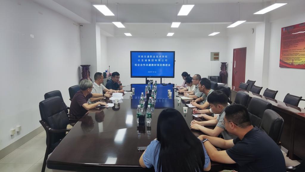 7月1日,比亚迪集团人力资源处校企合作经理杨双喜一行三人到我校参加校企合作共建教材项目推进会,会议由汽车学院副院长杨长征主持,相关专业负责人参加会议。