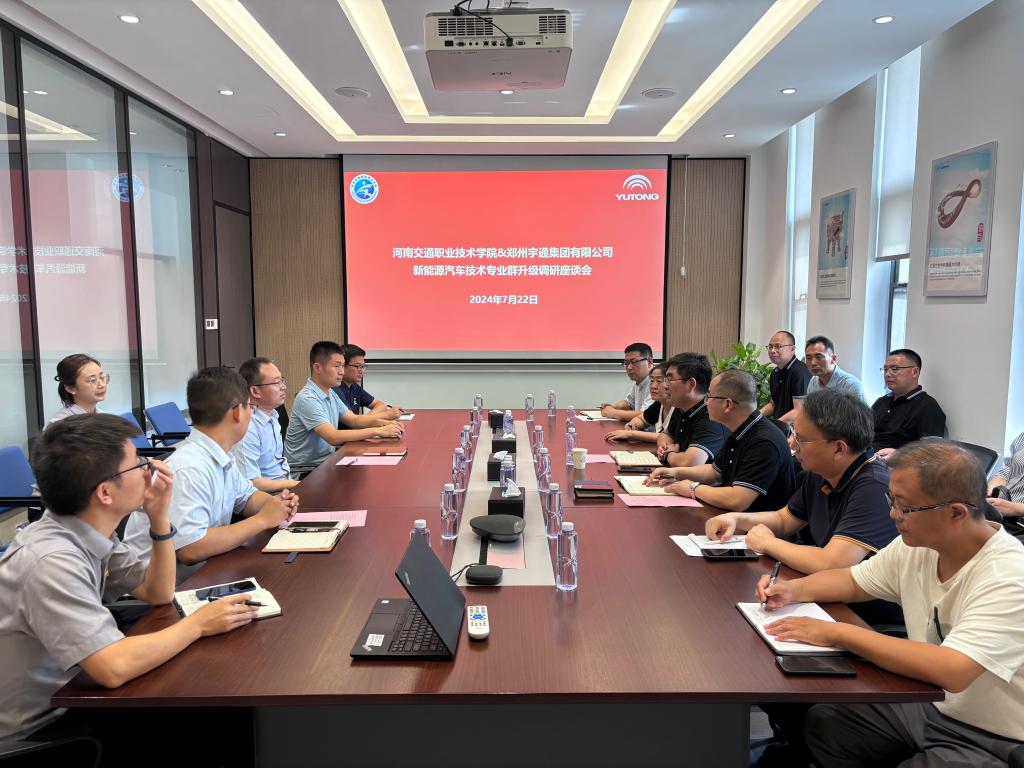 7月25日,汽车学院党总支书记轩照振、副院长杨长征带队赴郑州宇通集团开展调研,宇通集团教育公司总经理韩德利、校企合作部部长张晓峰,宇通客车海外事业部、高端产品事业部、宇通轻卡等机构技术代表,汽车学院全体教研室主任参加调研。