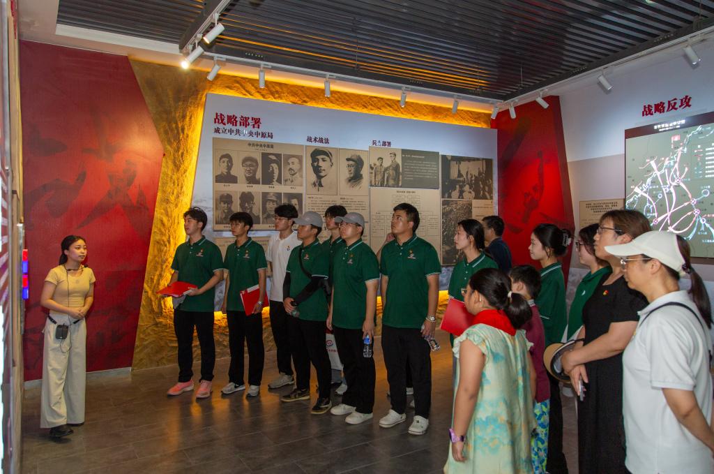 息县地处大别山革命老区核心区域,解放战争时期,刘邓大军在息县人民的帮助下冲破敌人的重重阻拦,渡过淮河天险进入大别山区,胜利完成了千里跃进大别山的战略任务。实践团充分利用当地红色资源,带领留守儿童前往刘邓大军渡淮纪念馆,开展“我是红色宣讲员”推普实践活动,沿着当年刘邓大军挺进大别山的历史足迹,通过讲解刘邓大军强渡淮河革命历史故事,表达对祖国的热爱、对历史的敬意,对革命先烈的深切缅怀和无限敬仰。在秦围孜村这个弥漫着盎然生机、古朴而温馨的小村庄上,实践团成员在驻村第一书记王奇虎的带领下拜访了村里2位“光荣在党50年”的退伍老党员,与留守儿童一起聆听老党员讲述他们的入党初心、革命理想和在部队度过的峥嵘岁月,还有他们年轻时参与革命斗争的英勇事迹,以及和平年代如何扎根基层、服务群众的点点滴滴,为孩子们点亮理想之灯,照亮前行之路,矢志不渝听党话、跟党走。