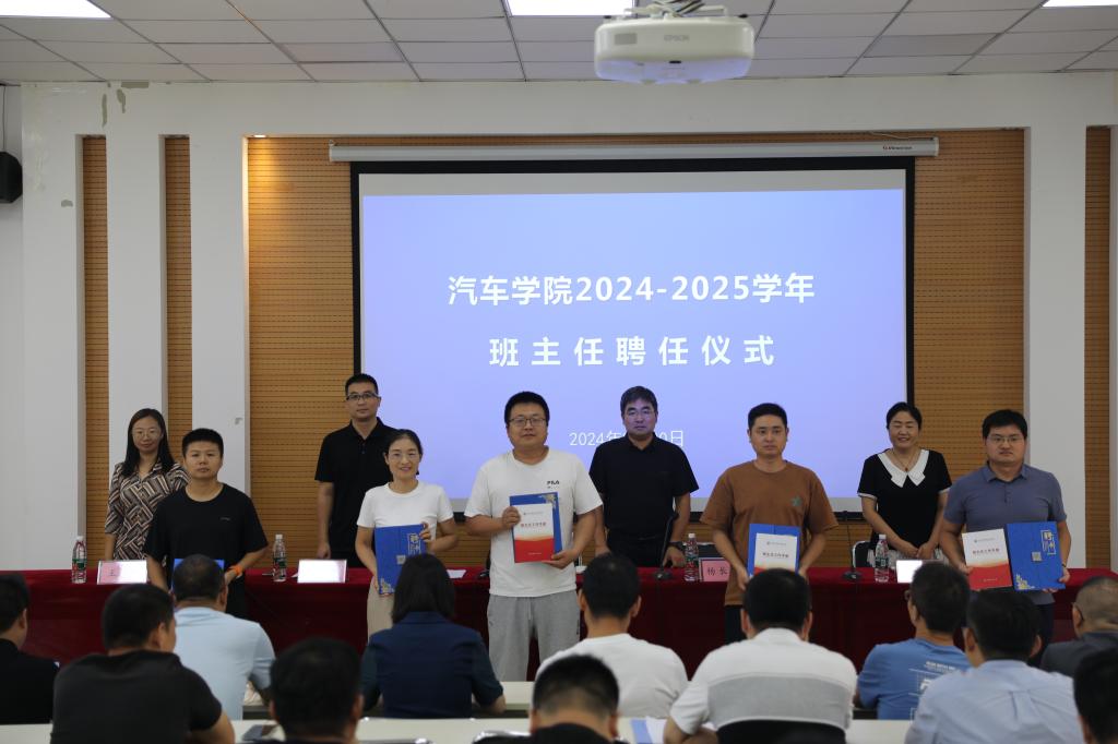 会议总结了过去一个阶段汽车学院班主任工作开展情况,充分肯定了班主任在学生思想政治教育、价值引领、学生学业引导、学生管理工作、班风学风建设、职业规划及就业指导等方面发挥的积极作用,对新学期开学迎新、学生报到、宿舍调整、主题班会、安全教育工作等进行了安排布置。会上,为2024级新生班级和2023级品牌冠名班班主任颁发了聘书。