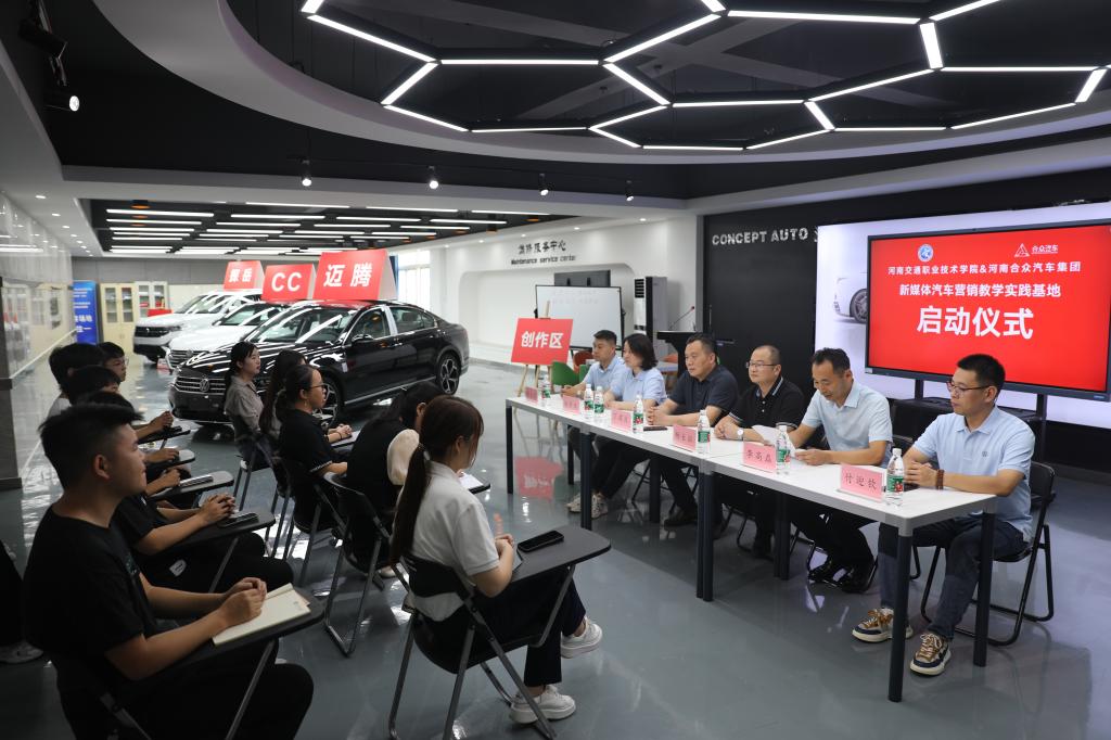 9月5日上午,汽车学院与河南合众汽车集团共同举办了“携手数智营销,校企共建新媒体汽车教学实践基地”启动仪式。河南合众明德汽车销售服务有限公司总经理丁建波,汽车新媒体总监赵景环,汽车新媒体经理蒋尔宇,汽车金牌主播付迎钦,汽车学院副院长杨长征等出席仪式,汽车营销专业全体教师和2023级汽车营销全体学生参加启动仪式。