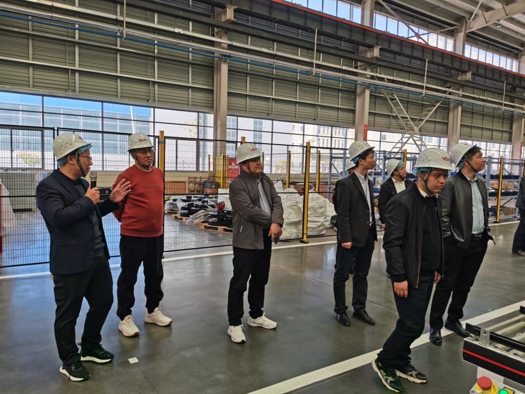 会后,一行人实地参观了卫莱先进制造中心,详细考察了AGV展示区、智能焊接区、自动化喷粉区、精密下料区及智能立体仓储系统。在智能化生产场景中,校企就特种设备安全检测等问题进行了现场交流,为后续合作奠定了坚实的实践基础。