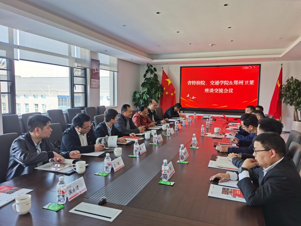 在交流会上,郑州卫莱董事长刘紫军对考察团的到来表示热烈欢迎。通过企业宣传片,大家深入了解了卫华集团及郑州卫莱的发展历程、核心业务及智能化发展战略。随后,三方围绕特种设备检验技术升级、校企协同育人机制、科技成果转化路径等议题展开深入探讨。汽车学院代表在发言中指出,希望以此次合作为契机,充分发挥高校的科研和人才优势,与企业、科研机构在技术攻关、人才培养、项目孵化等方面开展全方位合作,实现“资源共享、优势互补、协同创新”的发展目标。
