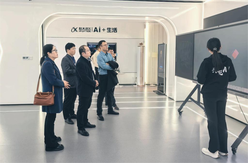 考察期间,考察团队在企业实地调研了数字孪生、星火大模型、同声翻译、智慧教室、视觉识别端侧小模型等技术在职业教育领域的应用场景,重点了解智慧黑板、同声翻译行业定制化解决方案的研发与落地情况。