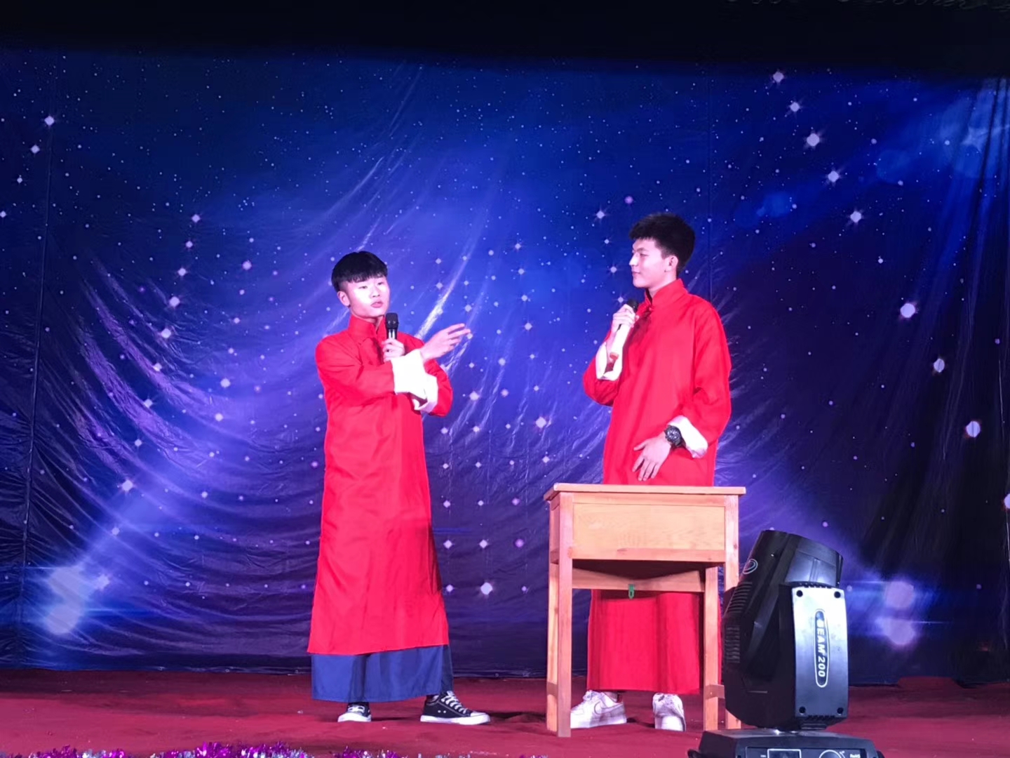 晚会在开场舞《丽人行》中拉开帷幕,舞者动作如行云流水张弛有度,裙角翩跹飞舞,节奏韵律缓急和谐,舞出了古典的大唐风韵。歌曲《我还年轻》、舞台剧《未来的你》在留给大家欢笑的同时,更多的是深思自己人生角色的转换,唤起了大家撸起袖子加油干、实现人生理想的斗志。小品、相声、歌曲串烧,晚会节目异彩纷呈,在欢快的节奏、跳跃的音符中带领观众细细回味校园记忆,重温校园青春,彰显了青春活力与激情。最后全体演员将带有美好祝愿的纸飞机掷向观众,寄托了他们对母校的祝愿和对人生的美好期盼。伴随着歌曲《再见》的音符将青春定格了这一美好瞬间。