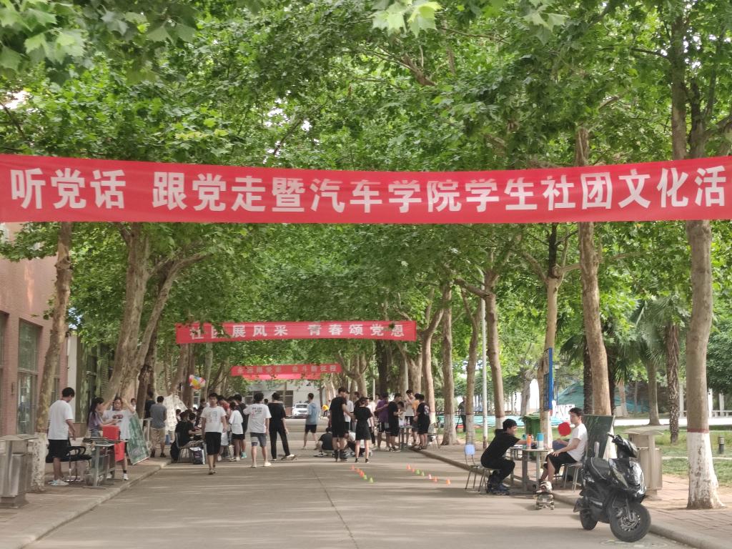 在建党100周年来临之际,为展示汽车学院学生社团风采,丰富校园文化生活, 6月24日,汽车学院在林荫大道举办以“社团展风采,青春颂党恩,永远跟党走,奋斗新征程”为主题的社团文化活动,学生社团指导教师、辅导员教师、学生会团干及500余名学生参加。