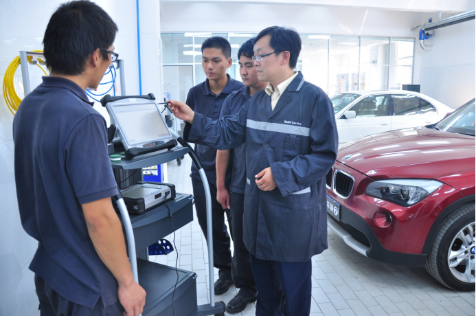 宝马培训基地除完成订单班学生及宝马在职员工的培训外,还对汽车学院各个专业的学生开放,结合专业课程,实训也会安排在基地进行。宝马基地同时也是汽车学院教师交流的平台,先进的教学设备及整洁的环境,为汽车学院专业教师的技术交流及业务学习提供了很好的沟通平台。