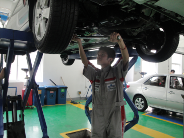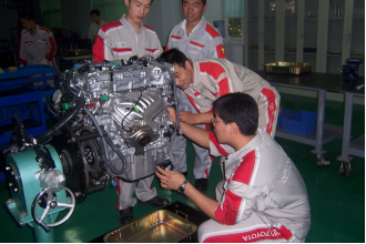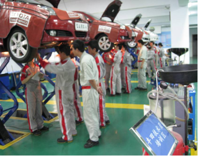 以丰田培训教材为中心,着重强调操作安全、5S、操作规范、专用工具、量具使用等,采取理论与实践教学相结合,使学员不但能掌握丰田的理念、一级维护保养、总成零部件大修等内容,还能熟练的进行规范操作。