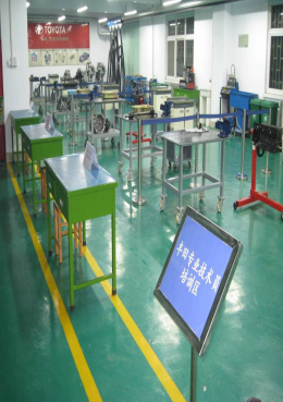 丰田实训场地位于汽车实训大楼一楼,1300余平方米,配备了15个举升工位,22辆丰田实训用车、丰田专用培训教室、考评办公室及零配件工具室。教学仪器设备、工具由学院和丰田公司共同提供,总价值四百多万元。