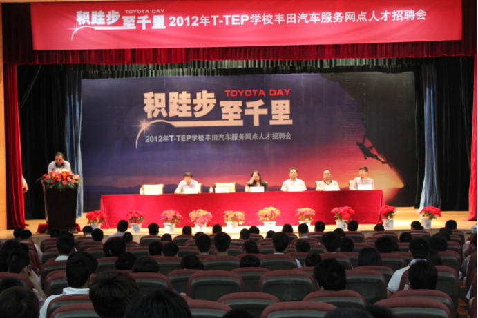 丰田公司每年组织丰田品牌经销店开展专场招聘会,丰田学员受到了用人企业的追捧,不用担心就业问题。